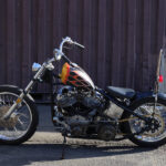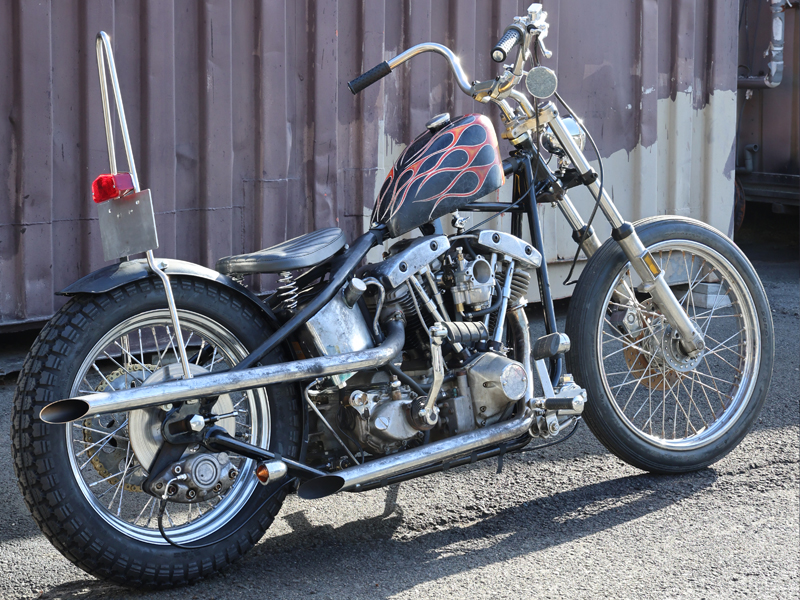外装類からフレームに至るまで、エイジングを施した、35フォークのチョッパーです。
