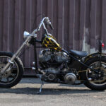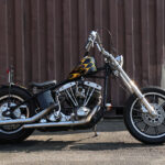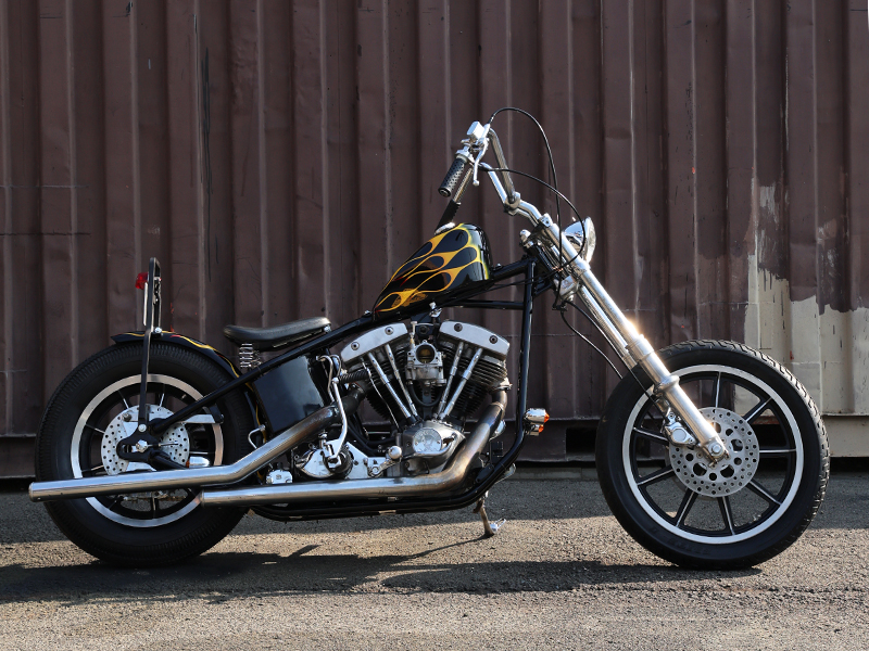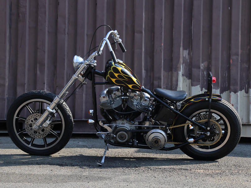 HD純正ナインキャストホイールで仕上げました。フロントは41フォークにリアは16インチとなるとスポーツスタータンクが似合います。ガスタンクからリアフェンダーまで流れるイエローフレイムスがポイントです。