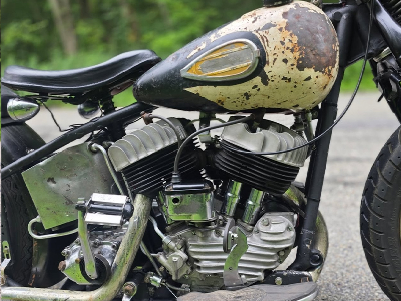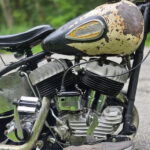 近年アメリカでも見つけることが難しく純正フレームに搭載されている車両は殆ど見かけなくなりました。Uは一度乗るとやみつきになり、他のHDとは違った乗り味で最高速こそでませんが、下からゆるやかに加速しとてもフィーリングが良いエンジンです。バサバサーっと走る感じです。このようばボバースタイルにエイプぶち上げカットダウンな感じを東部ではジャージースタイルと呼ぶそうです。エンジンはリビルドされているようですので到着後試乗動画を撮影しYoutubeにアップします。
