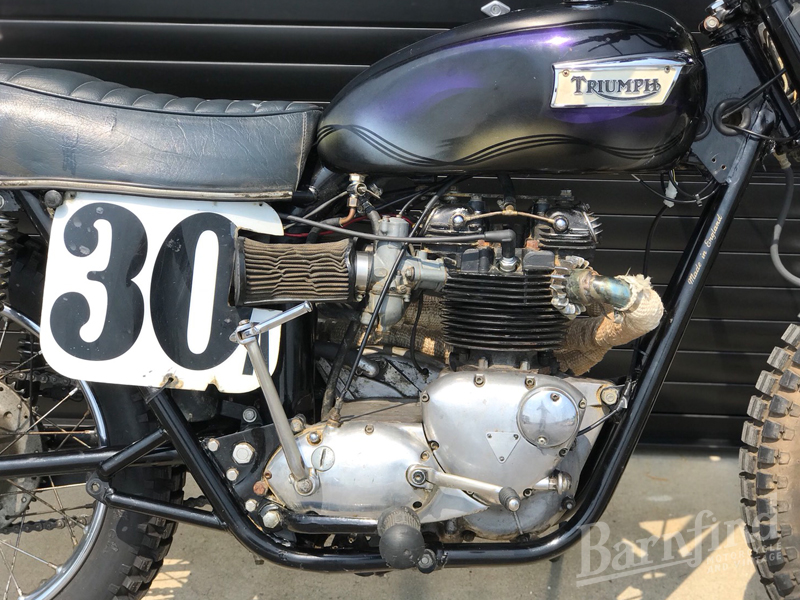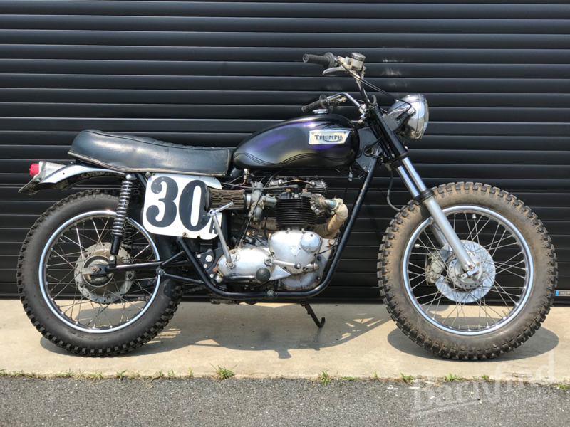 ダートトラックレースの本場、アメリカで実際にレースに出場していたT140ボンネビルです。輸入新規の為、公道での使用には整備が必要になります。