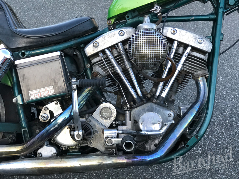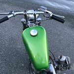 アメリカ東部のオハイオ州より買い付けた4速フレームチョッパーをご紹介します。フロントは8インチオーバーにダブルディスクブレーキ、当時物チョッパーシートにアーリースポーツスタータンクを搭載。マフラーも当時のテーパードが装着されバランスの良いチョッパーです。エンジンは異音や白煙無く1200cc特有のマイルドな吹け上がりです。