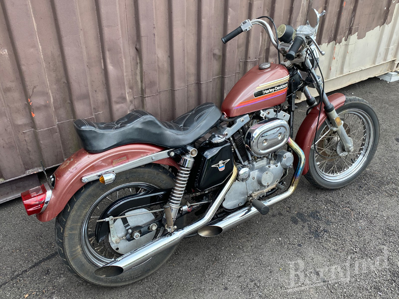 サンフランシスコから買い付けた74年式のスポーツスターです。エンジンは異音等無く静かで吹け上がりも良好です。外装は当時のままの純正ペイント、マフラーシート以外はオリジナルな車両です。配線引き直し、ブレーキOH済み、予備検査も終わっていますのですぐに乗り出しOKです。