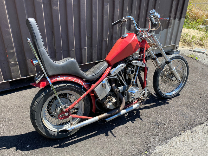 アメリカ南部で買い付けた73年式のFLチョッパーです。エンジンはオリジナル、フレームはパンヘッドがベースになっています。エンジン始動確認済み、ここからお好きな仕様に仕上げる事も可能です。