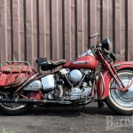 アメリカロサンゼルスの有名コレクターから譲り受けた47年式のナックルヘッドです。当時物のBUCOサドルバックに、フランダースなどビンテージパーツも盛りだくさんです。機関良好で整備後に新規車検をお付けし納車いたします。