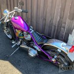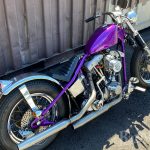 カルフォルニア州ベンチュラで買い付けた71年のFXチョッパーです。ヘッドはツインプラグで独立点火、キャブはHSRを取り付け、前後ディスクブレーキで走りに特化した車両です。