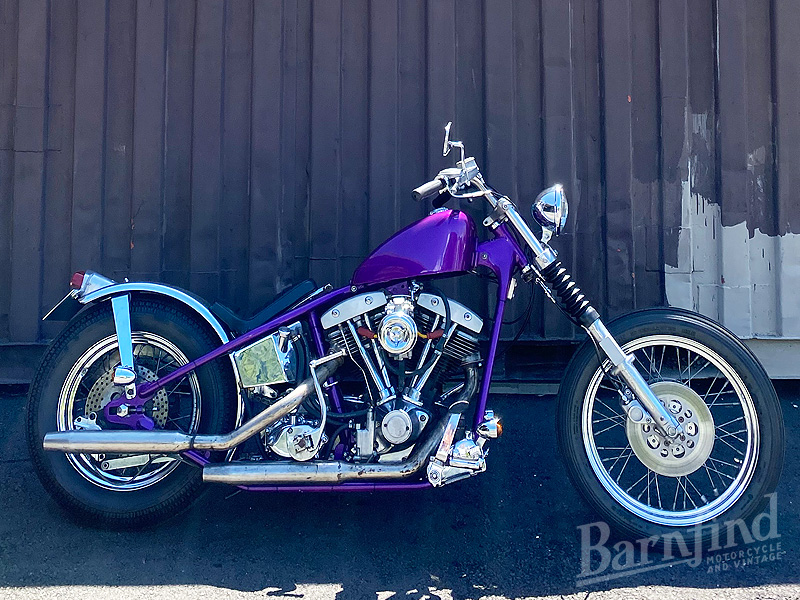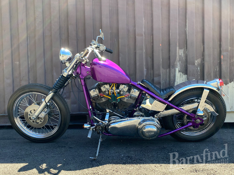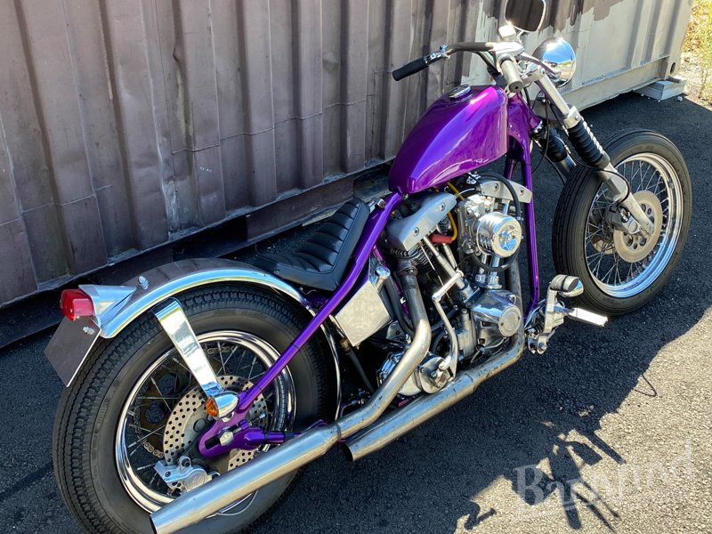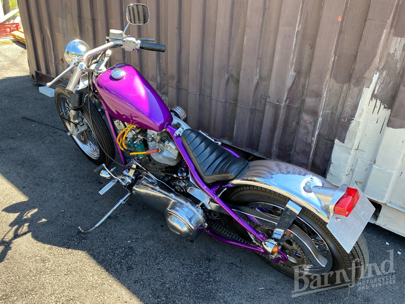 カルフォルニア州ベンチュラで買い付けた71年のFXチョッパーです。ヘッドはツインプラグで独立点火、キャブはHSRを取り付け、前後ディスクブレーキで走りに特化した車両です。