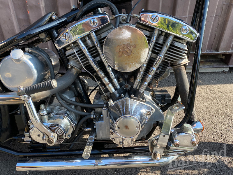 81年式のO/H済エンジンにサンティ―フレーム、ナロースポーツスタータンク、リアは19インチ、フロント21インチのヒラヒラ走るチョッパーです。整備・車検を付けてお渡しします。