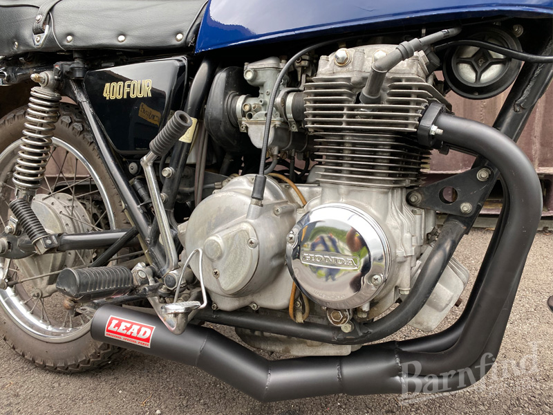 2オーナー車両だったCB400をアメリカより輸入しました。外装はオリジナルペイントで紛れもないノンレストア車両です。マフラーはBRC社製のリード当時物レプリカを使用し、高回転まで回すと心地良い音を奏でます。