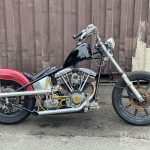 FXWG用フォークにスポタン、ボブフェンダーで仕上げました。前後トリプルディスクで飛ばせるチョッパーです。